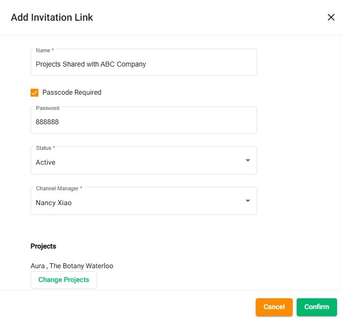Easily share selected projects with your partner companies using a secure invitation link.